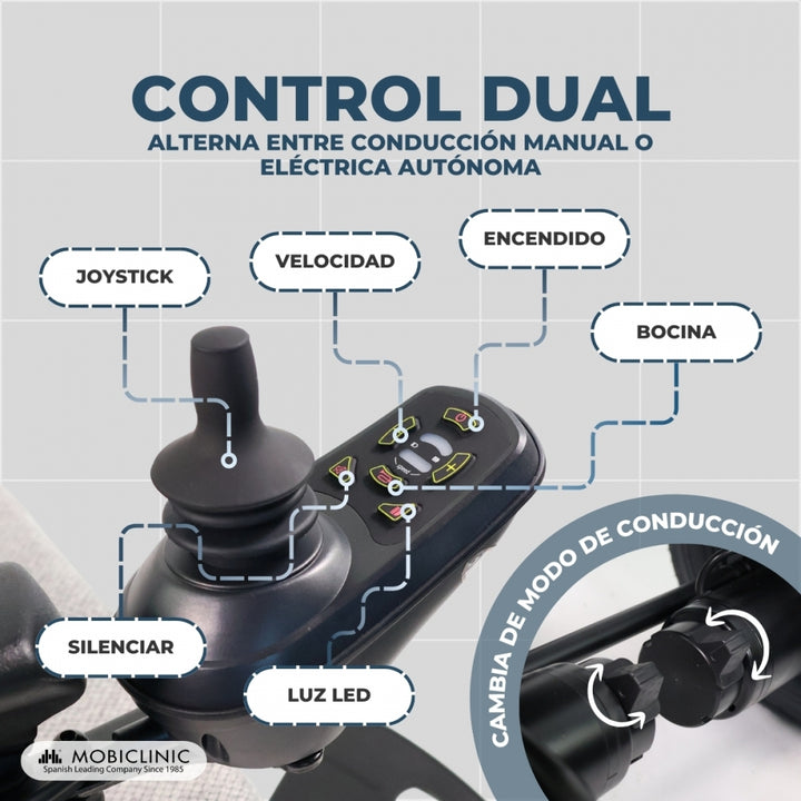 Its innovative design adapts to your lifestyle with a dual mode that allows manual or power driving (so that the passenger, if necessary, can propel it) and autonomous electric driving , providing the flexibility needed at every moment.
