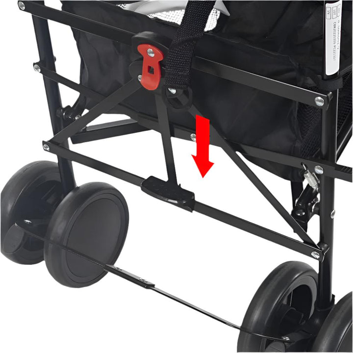 - From the handlebar, and with the other two steps completed, it is gently pushed forward and the cart is already folded. You cannot forget to place the hook once folded to prevent the cart from opening.