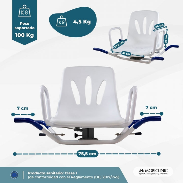 Its composition and design make it a very useful aid, since the rotation function helps people to be able to access the bath in a simpler way.