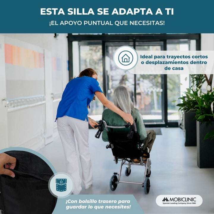 This transit wheelchair will allow you to make short and comfortable displacements safely. Don’t hesitate anymore!