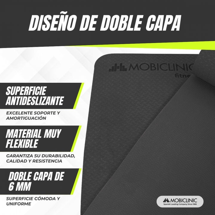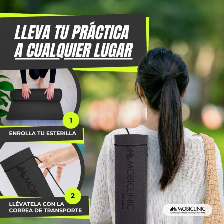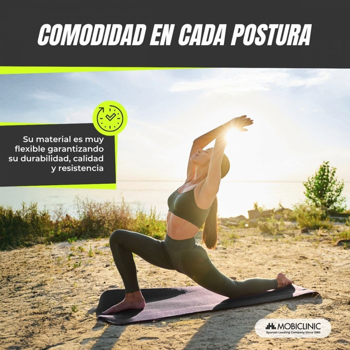 Likewise, its double-layer design makes it completely non-slip, preventing the mat from sliding off the body as well as on various types of floors, as it has non-slip fabrics on both sides, providing a good grip during the whole training session. This feature allows the user to practice numerous yoga and Pilates postures, including those that involve balance.