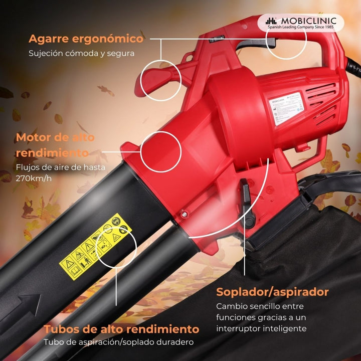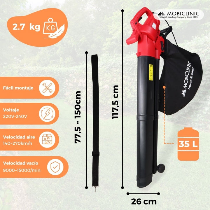 Equipped with a powerful 900W electric motor with a no-load speed between 9000~15000/min, the Mobiclean leaf blower offers constant and efficient power. Leaves, paper and small branches are no problem for this strong motor.