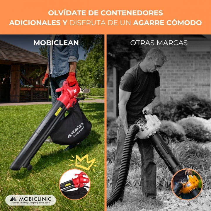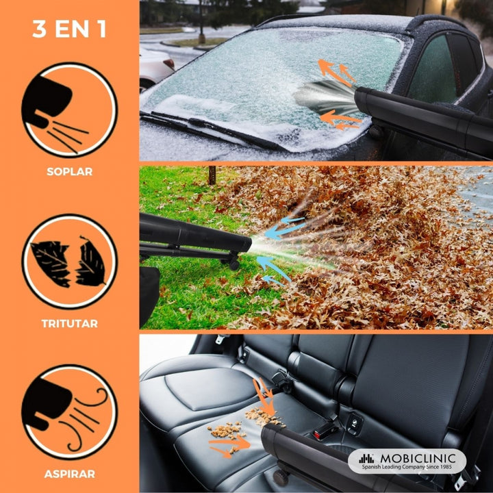 With 6 speed levels, this 3-in-1 tool adapts to any scenario, from light tasks to more intense challenges. Its functions go beyond simple blowing , it also sucks and grinds , all in one. The change between functions very simple. With the Mobiclean leaf blower, turn everyday tasks like keeping your garden, house, patio or porch clean into a hassle-free experience.