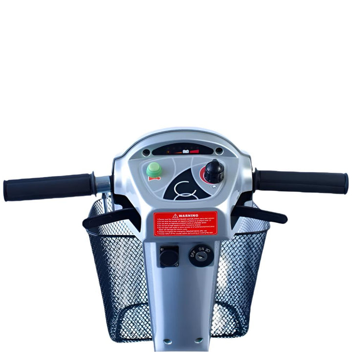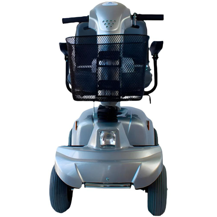 Es un scooter movilidad reducida muy seguro, incluye ruedas a prueba de pinchazos y ruedas traseras antivuelco, para que, en curvas e inclinaciones, no exista riesgo de caída. Tiene el chasis reforzado para reducir la flexión y el rodaje de las llantas.
