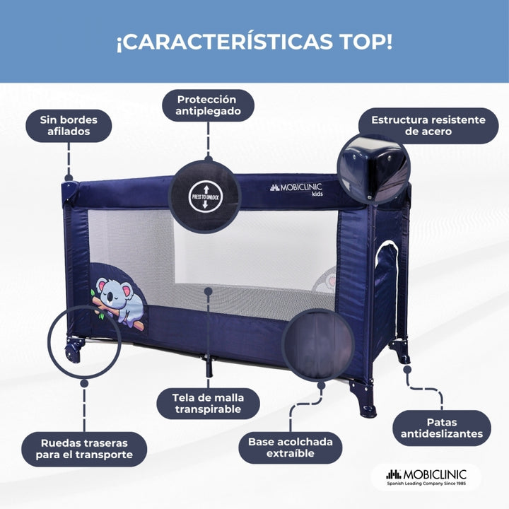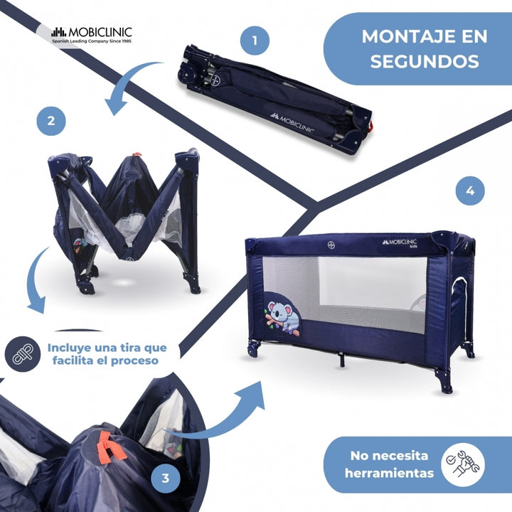 The Mofli portable crib consists of a resistant steel structure and a breathable fabric that allows full vision of the baby, easy to clean with a damp cloth. It works as a playpen thanks to its fixed height and optimal ventilation through its side mesh. In addition, its easy folding helps it to be transported to any space without problem if necessary. Also includes a removable padded base.