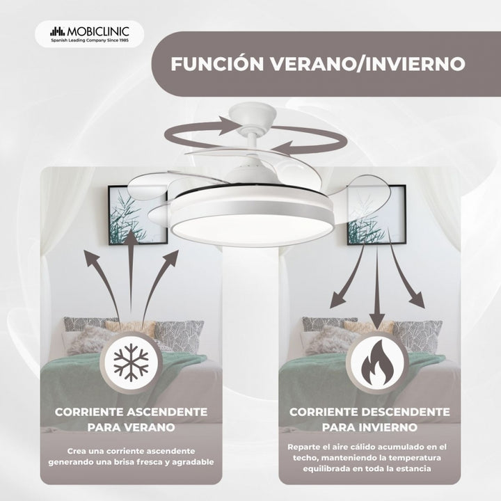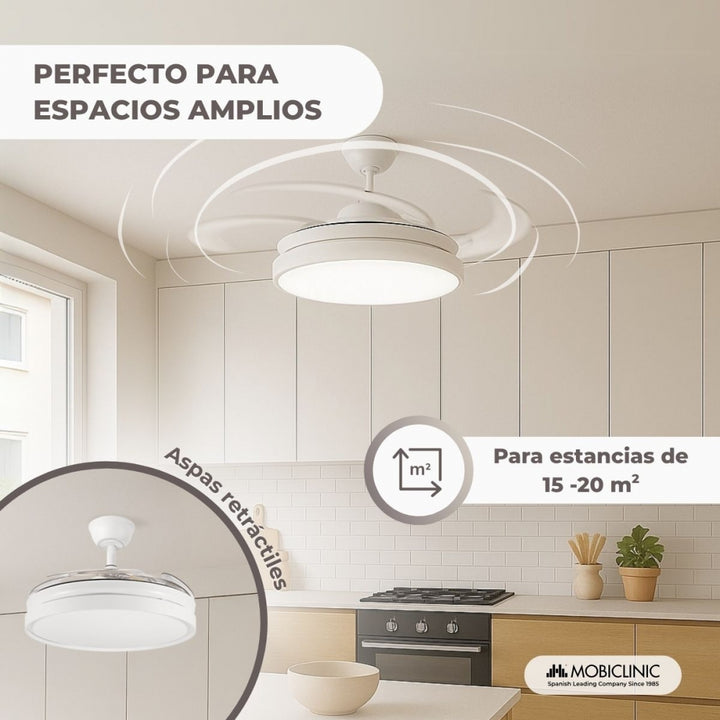 Recomendado para habitaciones de entre 15 y 20 m², este ventilador de techo tiene un diseño elegante y funcional que combina eficiencia, comodidad y estilo en un solo producto, transformando tu hogar en un lugar cómodo y agradable durante todo el año.